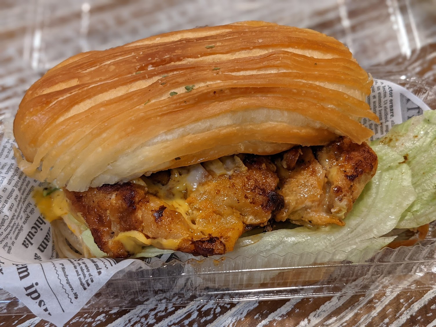 位在溪尾街上的一個小小攤位,很幸運到的當下沒有其他人。點完餐人就湧上來啦,沒有住在附近的人也可以使用熊貓外送。但晴天霹靂的是,原本想吃豬排蛋口味的但不到十點豬排就已經賣完啦(((゚Д゚;)))沒關係,我還有雞肉起司可選擇。