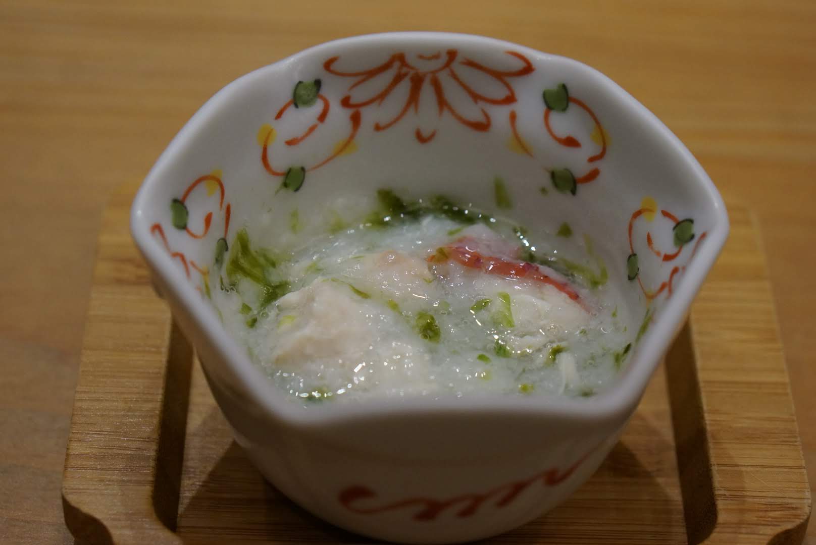 師父說接下來就是一連串的生食,所以這一道是先讓我們暖暖胃,黏黏稠稠的 搭配海藻、新鮮魚肉的甘美很清淡很舒服感覺非常適合生病的時候吃,然後就開始一連串的生食啦。