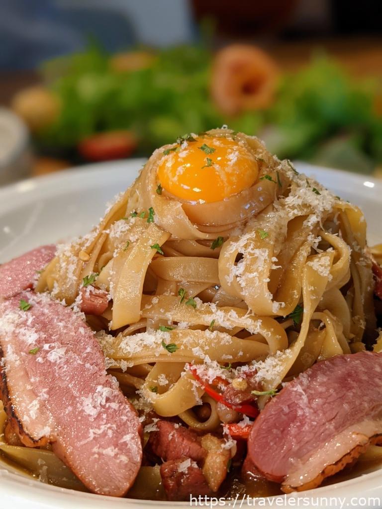鳥巢寬麵巴薩醋嗆辣鴨胸
