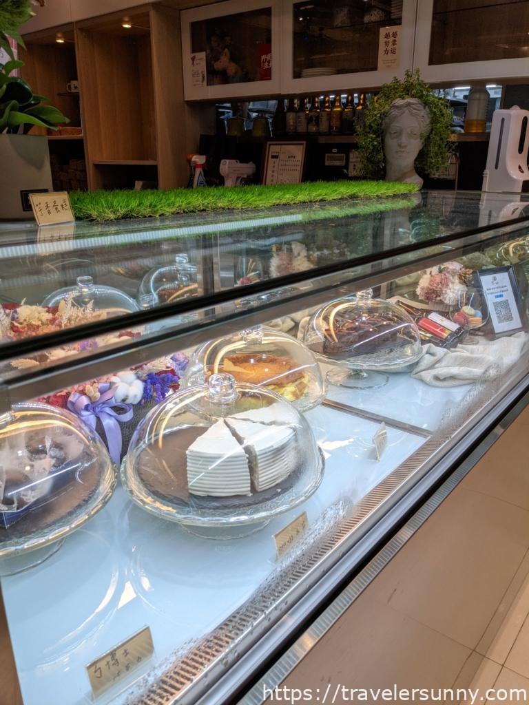 走進店內就可看到一大大的蛋糕櫃,當天擺了四種口味,每種都看起來可口誘人,根據當天老闆娘介紹,蛋糕品項每天都不太相同,大部分都會是自家做的,比較能控制使用的原料成分,讓客人吃得安心。