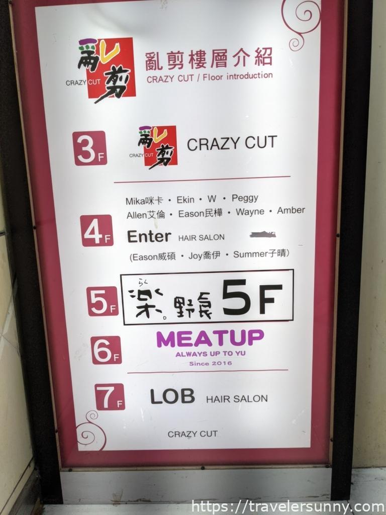 電梯旁就可看到樂野食的招牌,搭電梯上5F吧!