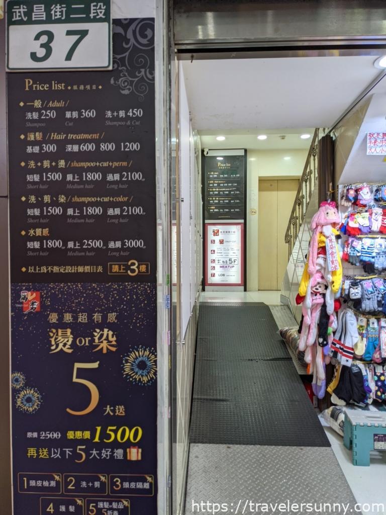 出入口就在屈臣氏的隔壁,門口有攤賣襪子的,有可能不小心就經過了,記得看到賣襪子的話就可以稍微找一下招牌,找到武昌街二段37號就大方地走進去吧。