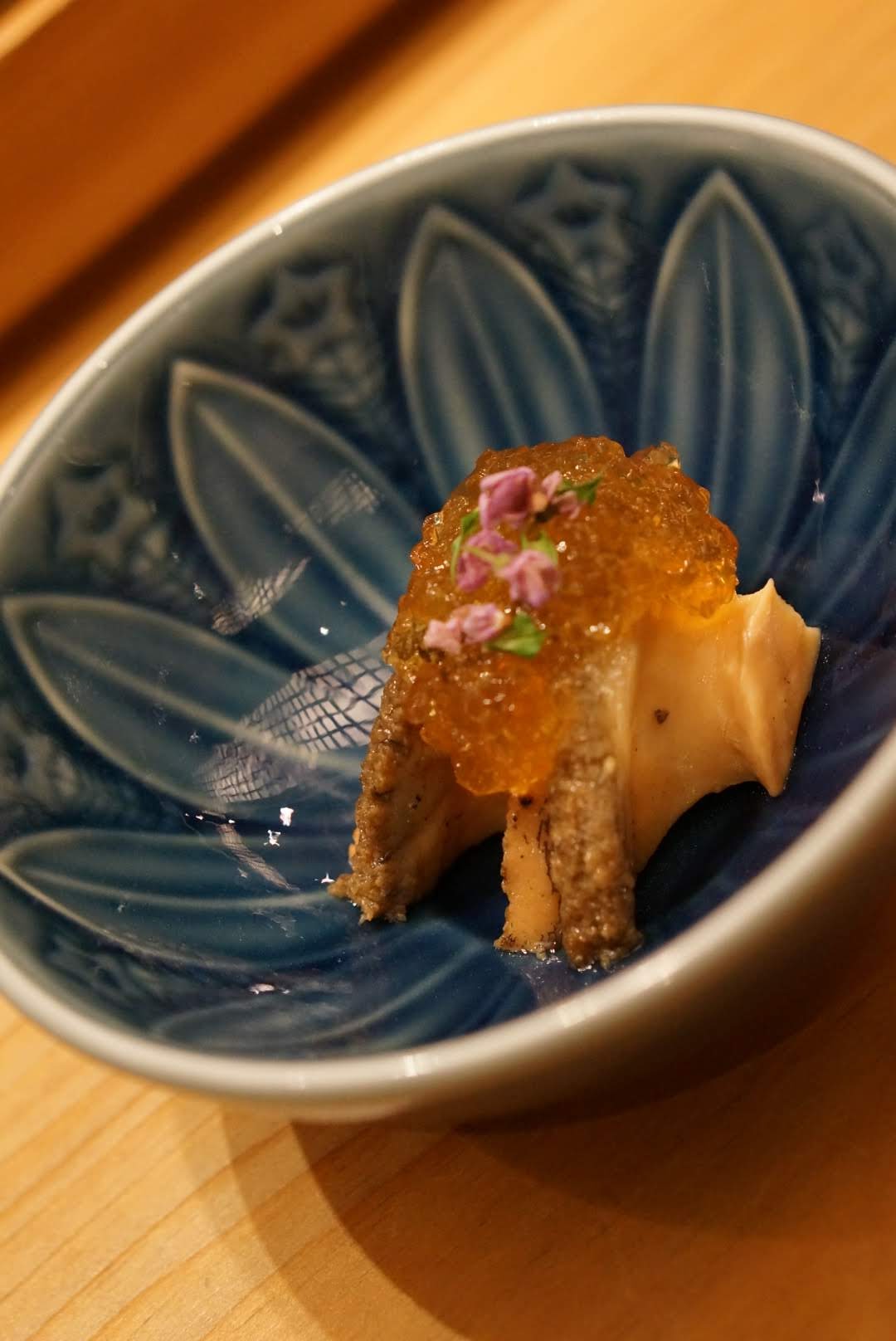 一開始還不知道什麼是島鰺 查了才知道,原來島鰺算是青魚類 在日本算是高階食材。肉質細緻爽口富含油脂彈力的口感和平常吃過的白身魚有點不太一樣,漸進式讓人更加期待接下來師傅又會呈上什麼樣的作品呢