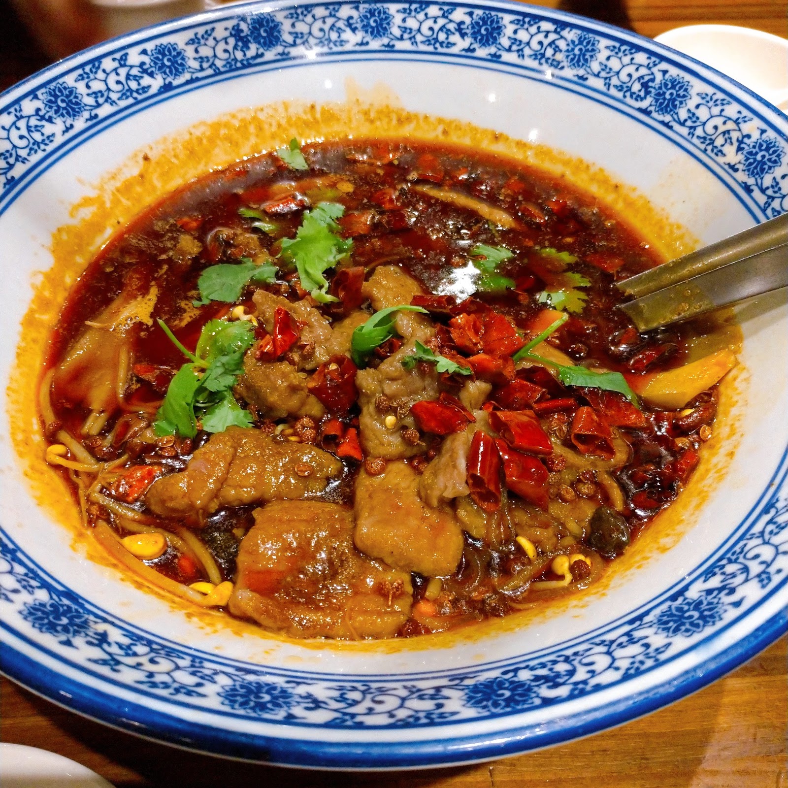 記得第一次在國外點水煮牛肉麵時候還以為是道清淡的料理(年少無知) 後來才發現原來是我最愛的麻辣口味 而且還大大超乎我想像的辣 樂天皇朝的水煮牛肉超大一碗 牛肉非常軟嫩 好想去問師傅怎麼做的 上面浮著厚厚的一層辣油 裡面滿滿的小花椒 又麻又辣 超過癮 除了牛肉以外 還有粗冬粉 豆芽菜 跟豐富的菇類 其實有這道菜加白飯我就可以吃得很開心了 好像還比去吃麻辣鍋便宜耶 哈 ※平常沒吃辣的人千萬不要點這道喔 小辣也是很不得了的
