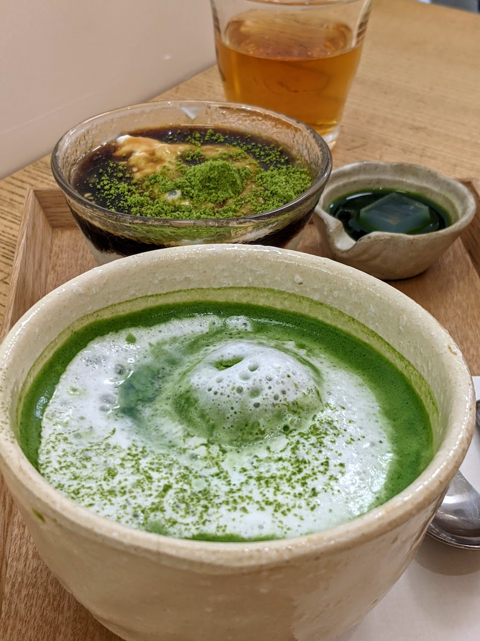 疫情前總是客滿的店內,反而因為疫情客人少了許多。少了吵雜感和時間限制的急促感,只要沒有客人候位的話,都能悠哉久坐。抹茶濃度甜度屬中間值,是大眾都可接受的口味。