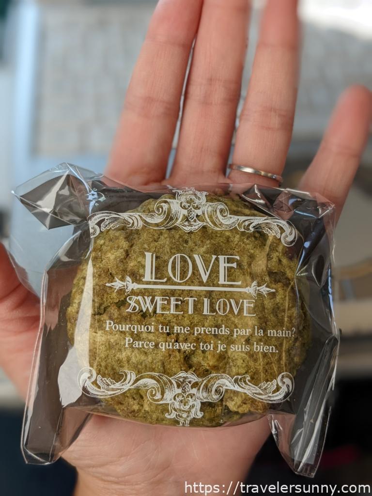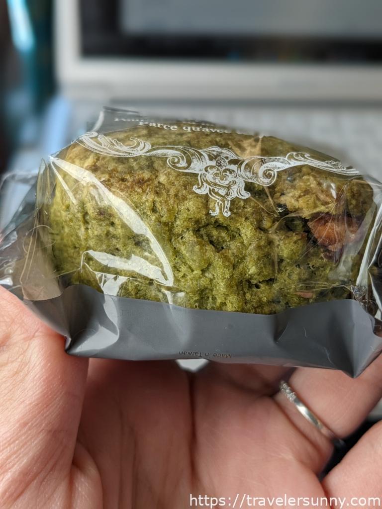 手掌心大小的靜岡抹茶紅豆司康,是去旅行的時候帶在身上止餓時吃掉的,也有可能因為放了比較多天,少了司康該有的外酥內軟的口感,有點像餅乾的口感,但桑妮個人是滿喜歡的(不是說它不好吃喔,有可能是我自己放太久了。)