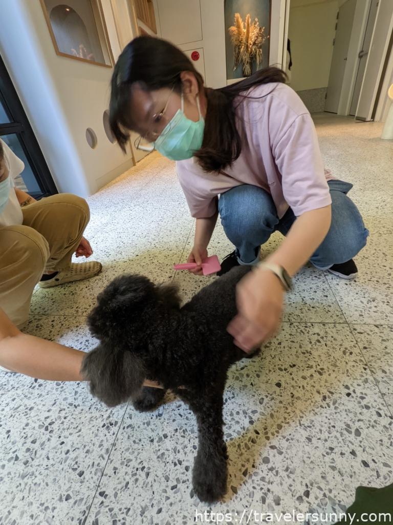 雖然很常在家幫歐嚕洗澡,不過我們接下來還要繼續出去玩要拍很多美美的照片,自己吹毛的話歐嚕就都無法澎澎胖胖的,還是請專業美容師姊姊處理啦。為了避免下水後毛髮有打結的話會更加美容師姐姐還有特地先來幫忙梳毛喔。如果選擇自助洗的家長們也千萬不要省略這個步驟,不然事後要拆可是更花時間的。