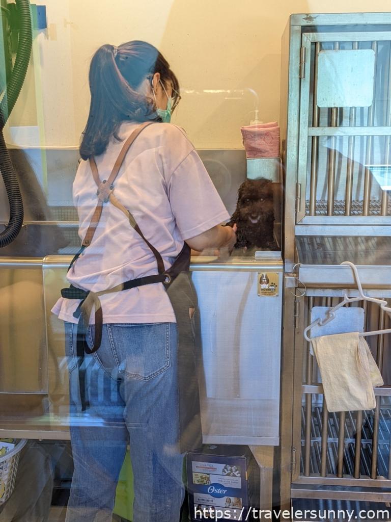 稍早就介紹過,多野樂旅館的寵物美容室是以整面落地窗設計,主人可以隨時看到自己寶貝的情況,若是有分離焦慮症的毛孩們也可以一直看得見自己最心愛的主人,降低美容時的躁動情緒。美容師也會依照寵物的皮膚狀況,挑選適合的沙龍級洗劑,並且和自助洗區一樣搭配臭氧水,對皮膚很容易有過敏情況的歐嚕嚕來說,真是讓人安心。