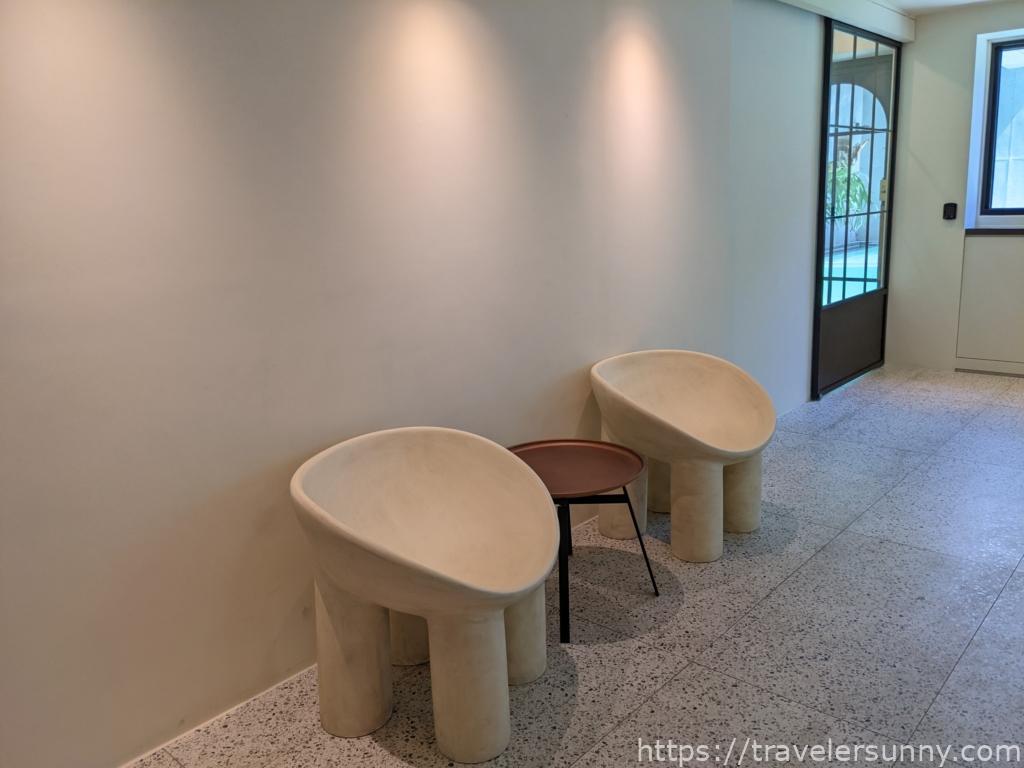 一旁有長條座位區可放置東西,地板溼溼的是因為其實這是游泳後才補拍的照片,大家就別介意啦。