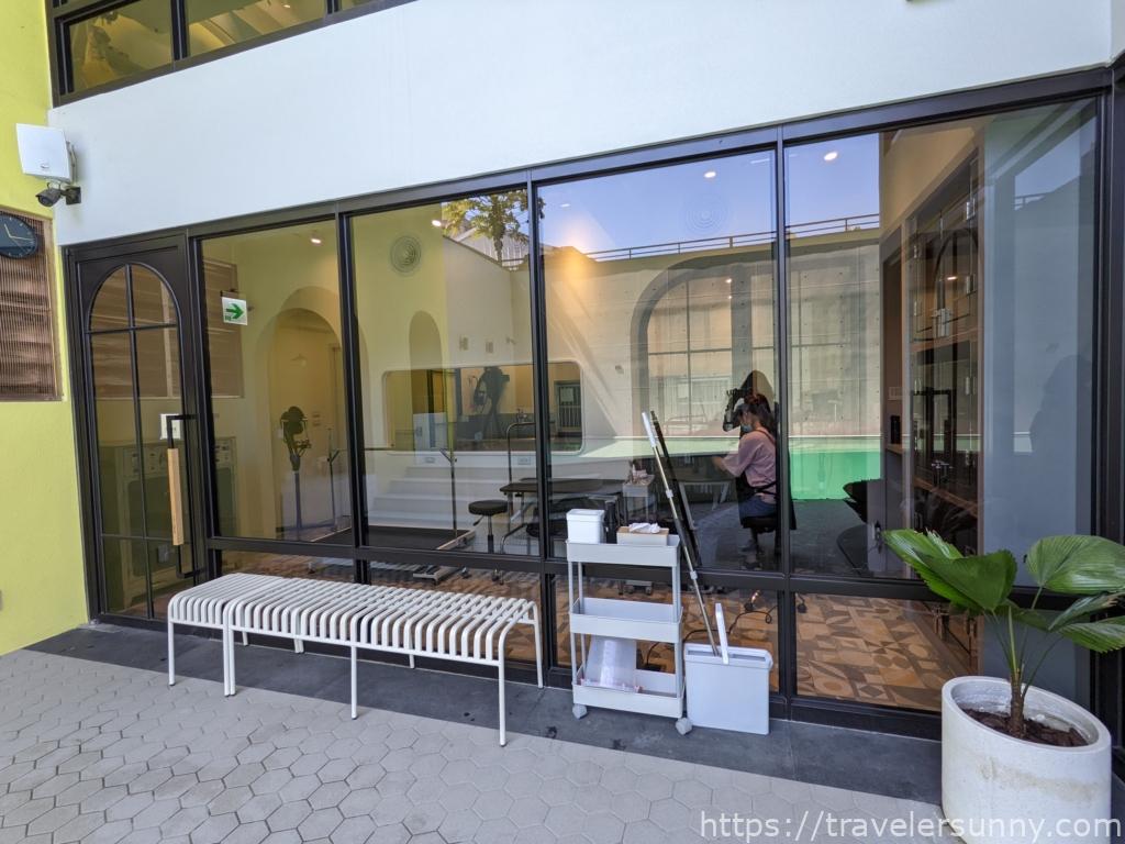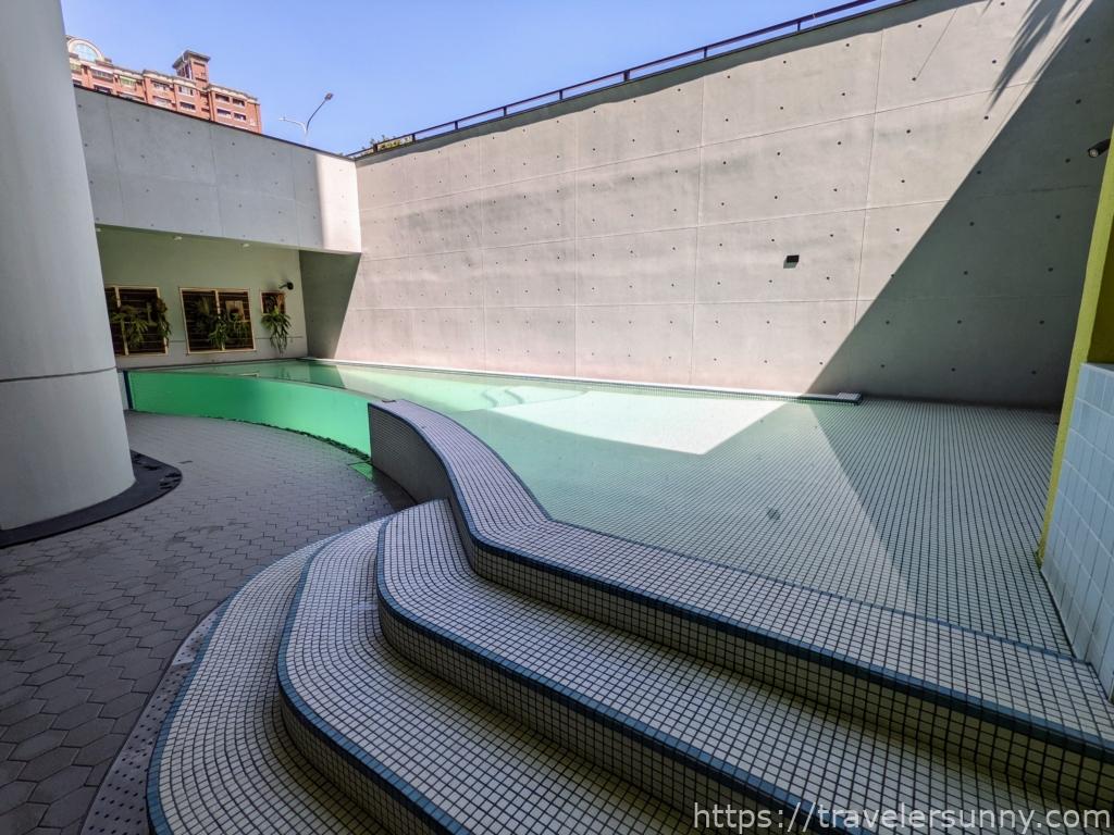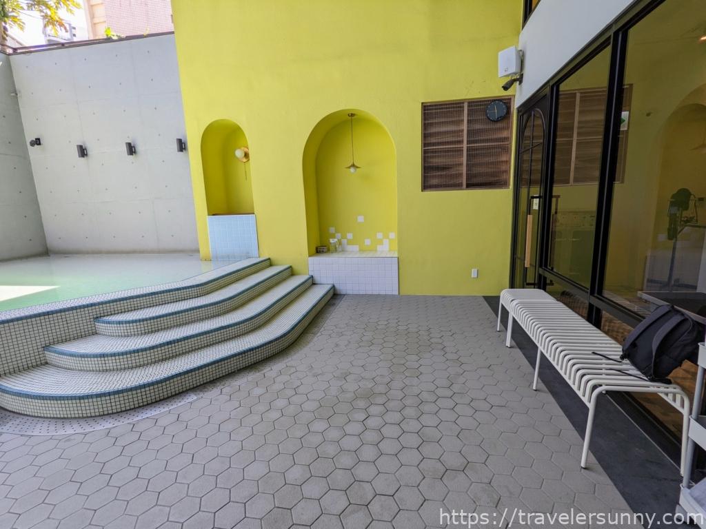 在一樓準備辦理入住時就有看到下方黃藍色的泳池,辦完入住就趕快下去探險一番啦。