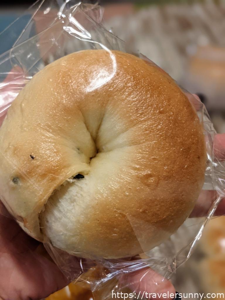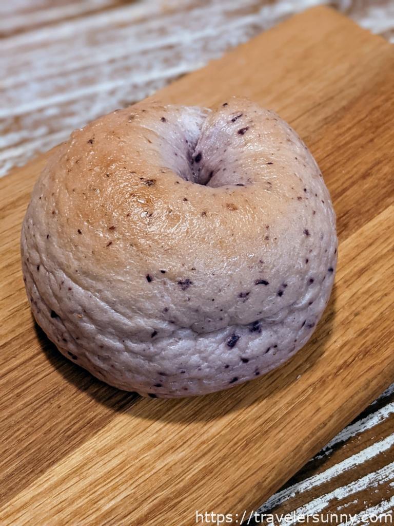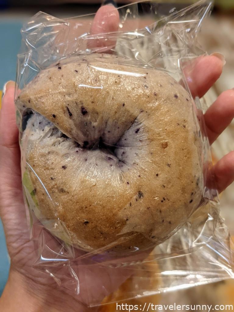 藍莓乳酪貝果一直是桑妮最愛的貝果口味之一,胖胖的貝果有一個女生的手掌大。