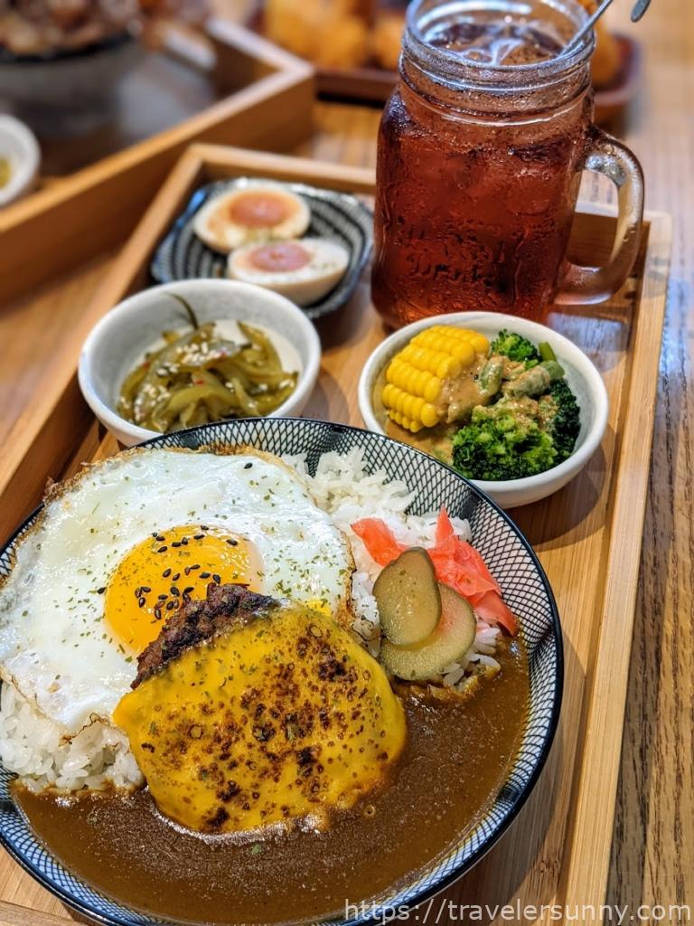 因為燒肉丼的醬料有點偏甜,同行人還滿緊張的,不過這個咖哩一點都不甜,是使用荳蔻、丁香、茴香、肉桂、胡椒、薑黃……等20幾種辛香料調配而成,帶點微辣的成熟大人的咖哩喔。