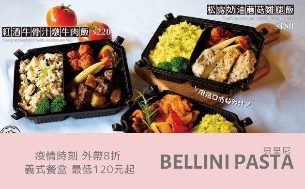 外帶優惠-貝里尼BELLINI 三款義式餐盒只要150起跳,外帶再享8折 便宜好吃