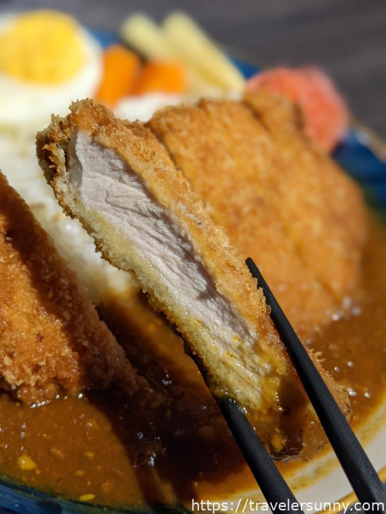 一口咬下,豬排外酥內軟,厚實不柴有咬勁,雖然無法和正統日式豬排店的豬排相比,但以這個價格來說桑妮覺得很可以。