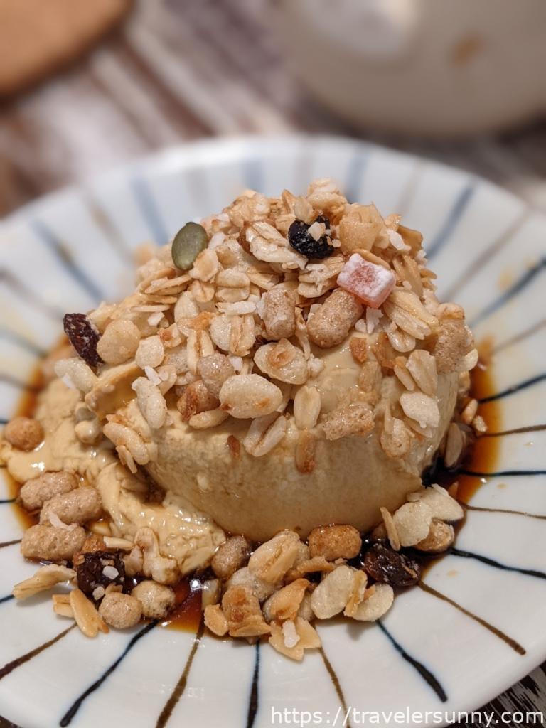 不加水的布丁,非常的軟嫩,因為不添加乳化膠,反倒出來有點不成形,入口即化,搭配穀物麥片增加口感,焦糖微苦,屬於大人口感的布丁,連不太愛吃甜點的YOSHIE都和我搶著吃,但喜歡統一布丁的人可能就不太適合囉。