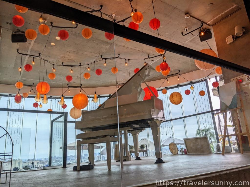 現場也放置了一台平台式鋼琴,似乎平時是有人會現場表演駐唱的,不過可能因為當天不曉得是因為年節時候,還是因為我們到達的時候是下午時段,可惜沒有遇到表演,希望下次有機會前來是能在這看夜景,聽表演和另一半好好浪漫一下ε٩(๑> ₃ <)۶з