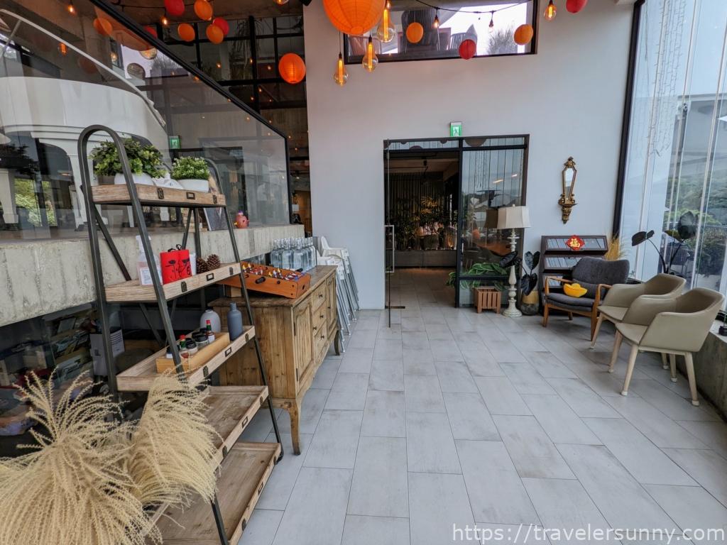 通往戶外區和二樓的通道處,有放置幾張沙發椅和手足球遊戲,感覺在這也能拍出許多美美的照片。