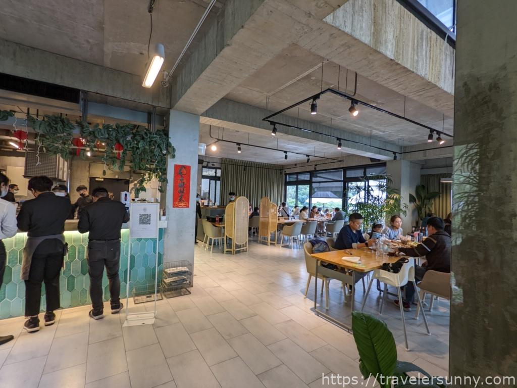 走進餐廳,您會發現這裡有一個簡潔明亮的接待處,牆壁由整面的落地窗組成,以清水模風格裝修,營造出一種清新舒爽的氛圍。