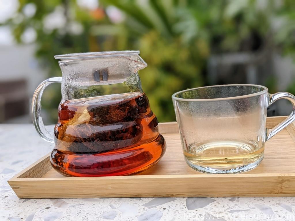 一上桌就能聞到這壺鐵觀音獨有的香氣,湯色呈現美麗的深琥珀色,第一泡茶味較濃厚,微澀當中卻帶甘甜。回沖後的第二泡苦澀味降低鐵觀音的香味更加凸顯,可無限回沖,適合久坐聊天時點CP質非常的高。