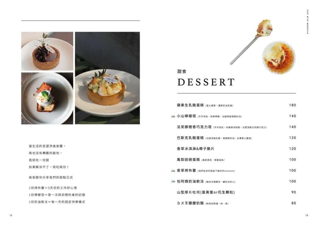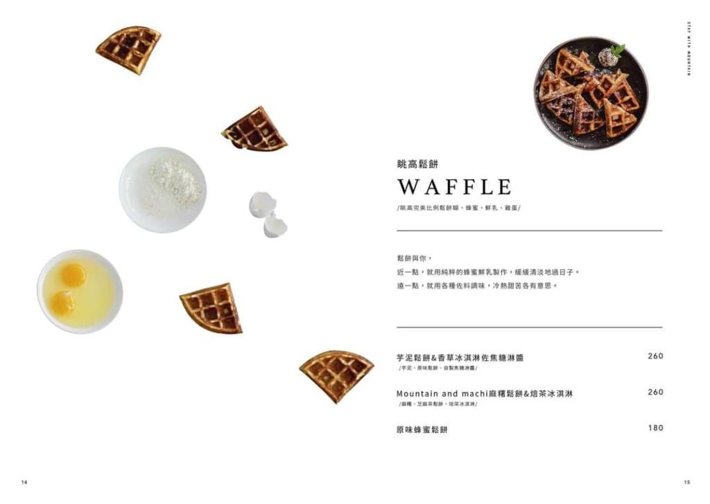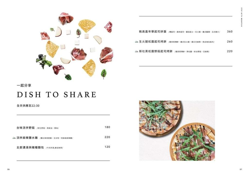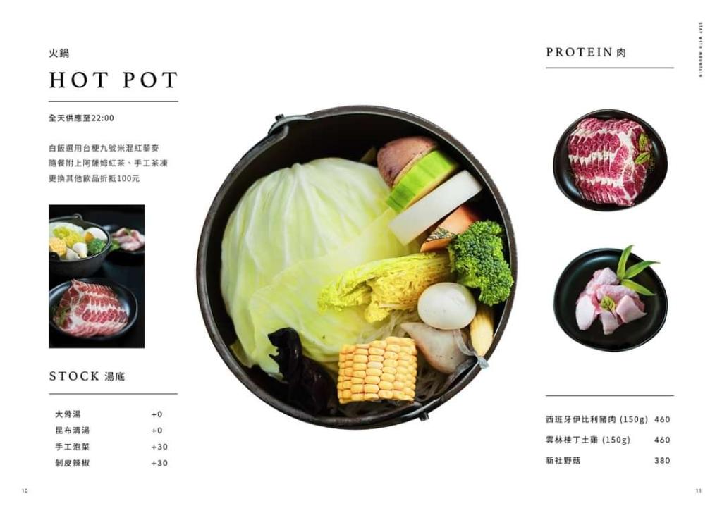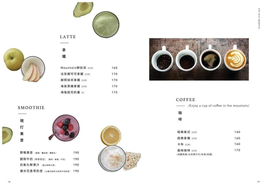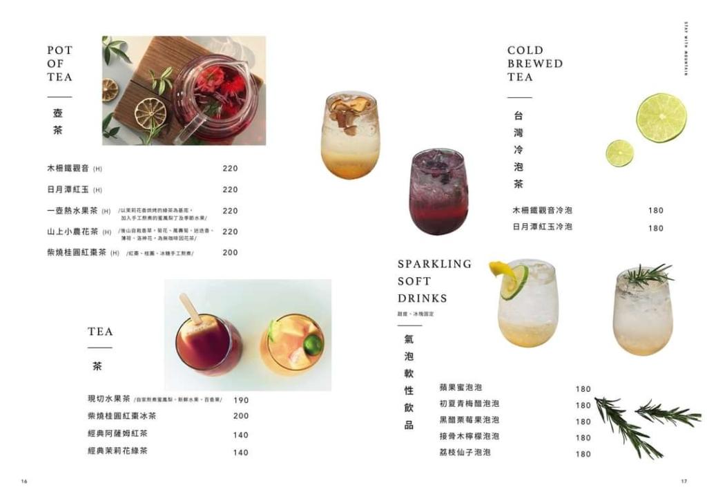 眺高的餐點十分豐富,從主食義大利麵、燉飯類、火鍋、披薩、沙拉、貝果、鬆餅、甜點、到各式茶飲、咖啡、果昔、甚至是酒精飲品都有提供。